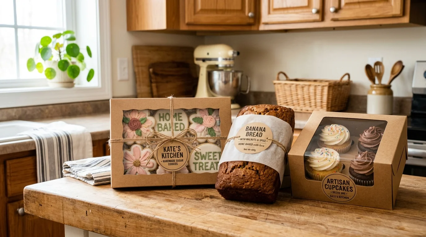 Cottage food laws in most states require specific labeling (producer name, address, "Made in a home kitchen" disclaimer, ingredients list, allergens). Factor in the cost of boxes, bags, labels, stickers, tissue paper, and any presentation materials. A typical packaging cost is $0.50 to $3.00 per unit depending on the product.